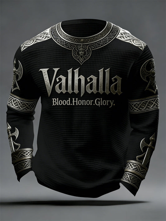 Pánské švédské vikingské styl valhalla tištěné vafle tričko