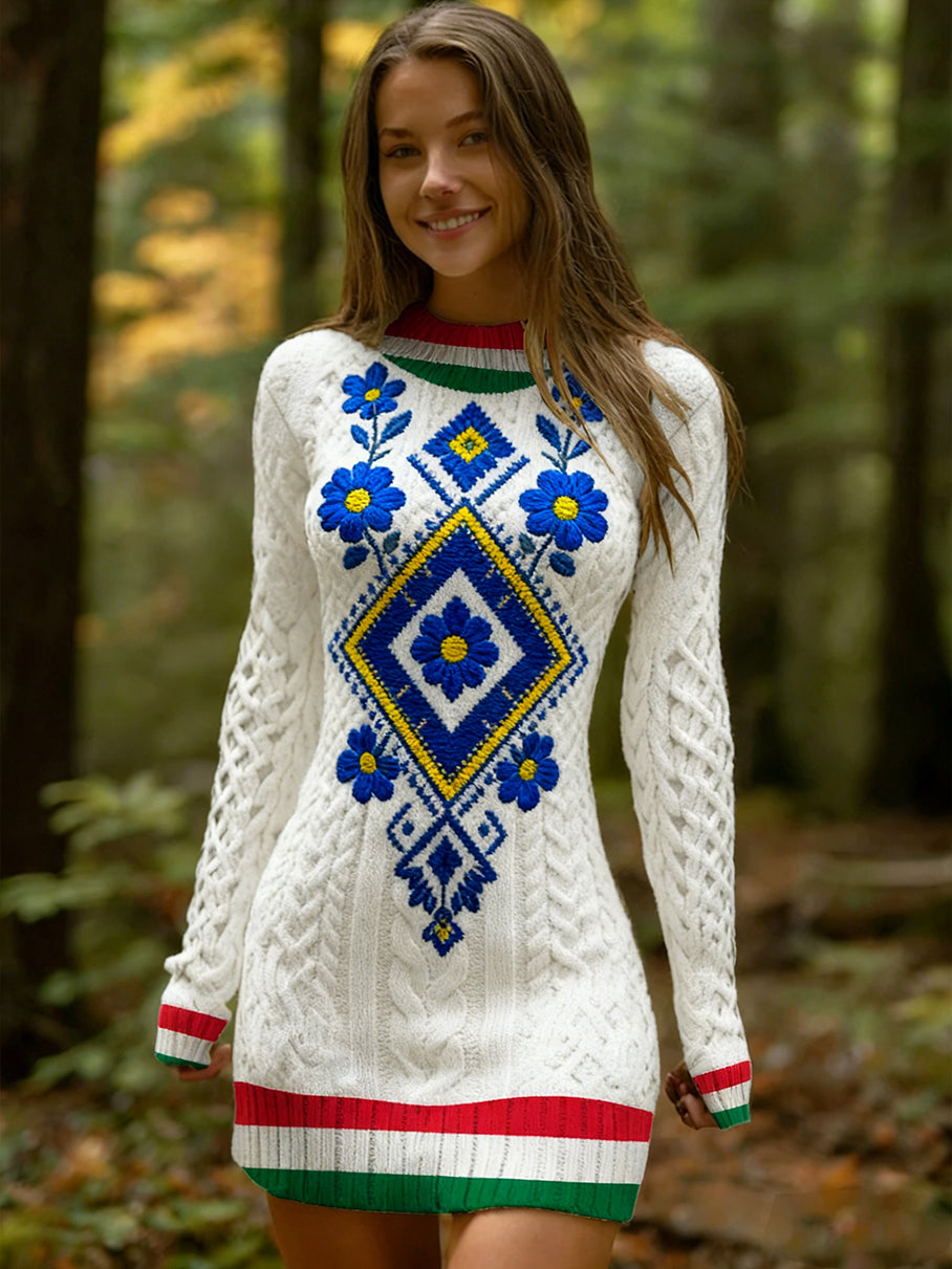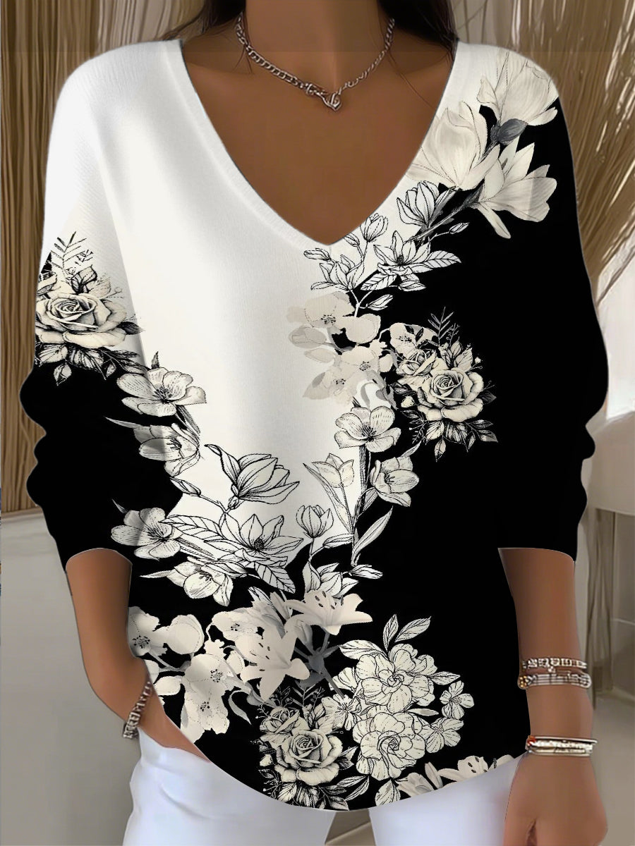 • Dámské ohromující modrobílý gradient vneck svetr s modrou kočku a květinový design multicolour / s