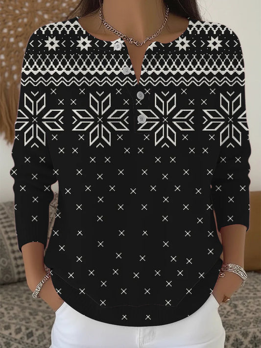 Dámské vintage vánoční geometrické umění vysokého kakla svetr