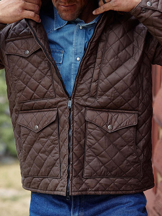 Pánské vintage minimalistický diamantvzor quilted bunda