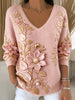 Dámské 3d třpytky květinová tisk růžová mikina s v krku