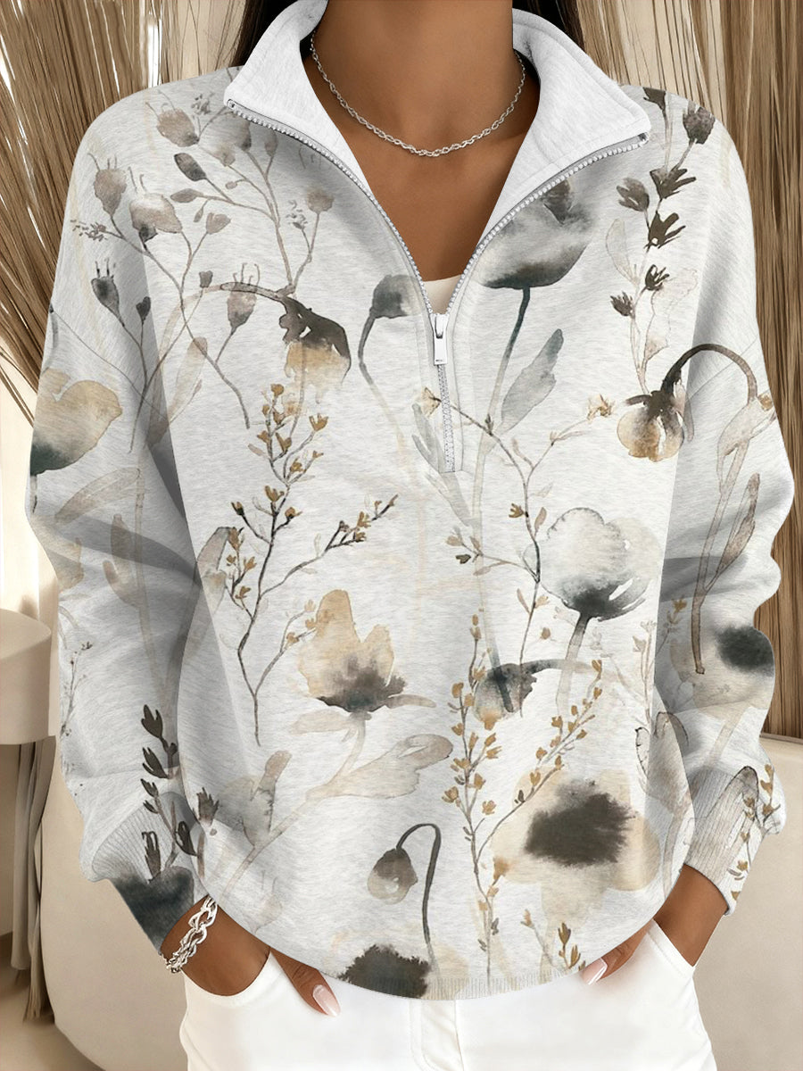 Dámské akvarel květinový stojangolier mikina