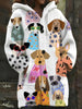 Dámské barevné psí tisk s kapucinou dlouhý kabát