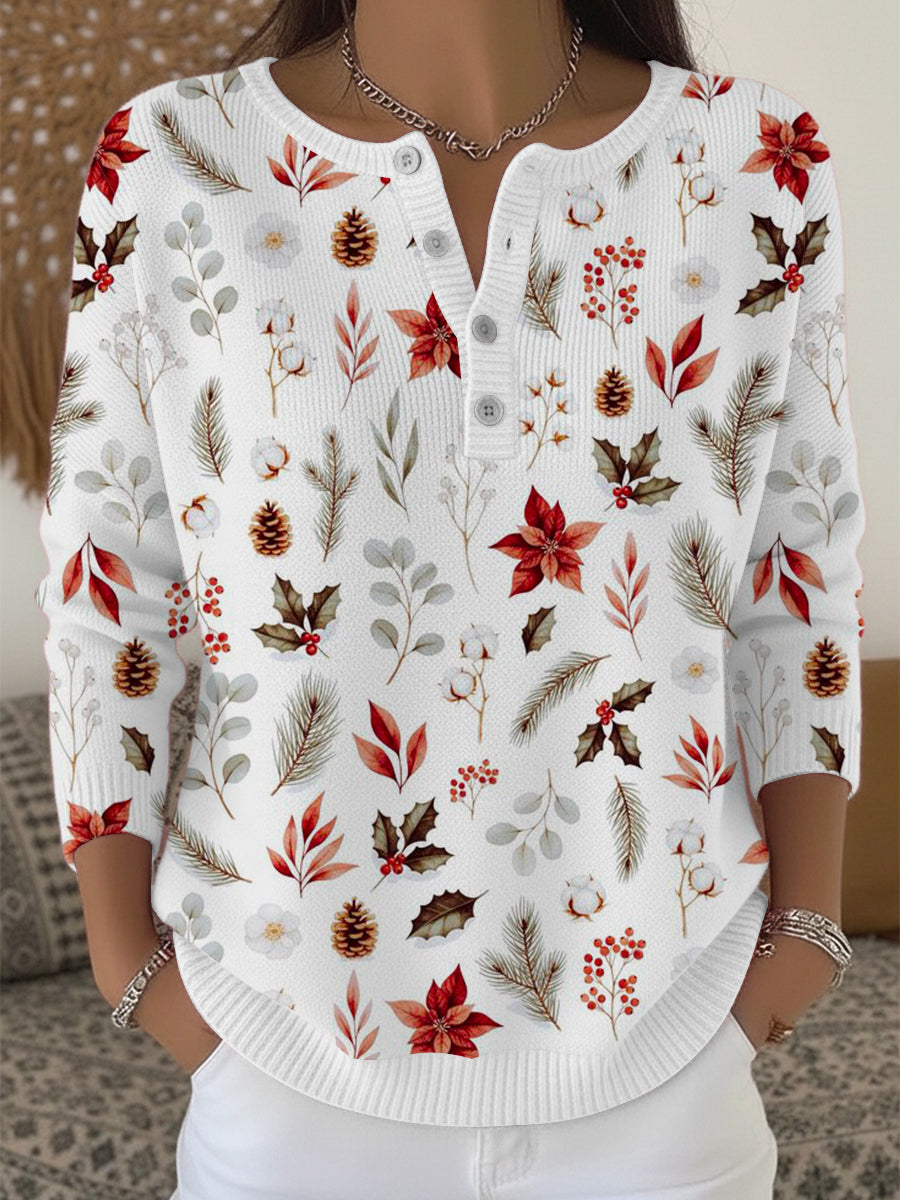 Dámské bohaté vánoční květinové henley svetr