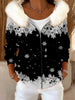 Dámské černé sněhové vločky tisk kožešinový kabát