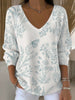 Dámské čerstvé modré květinové a butterfly vneck svetr
