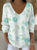 Dámské čerstvé zelené květinové tisk vkrk svetr