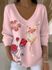 Dámské diamantové ptačí a růžové vyšívané růžové v krku svetr