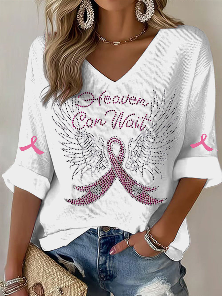 Dámské diamantové stuhy čisté bílé neformální v-neck s dlouhým rukávem košile