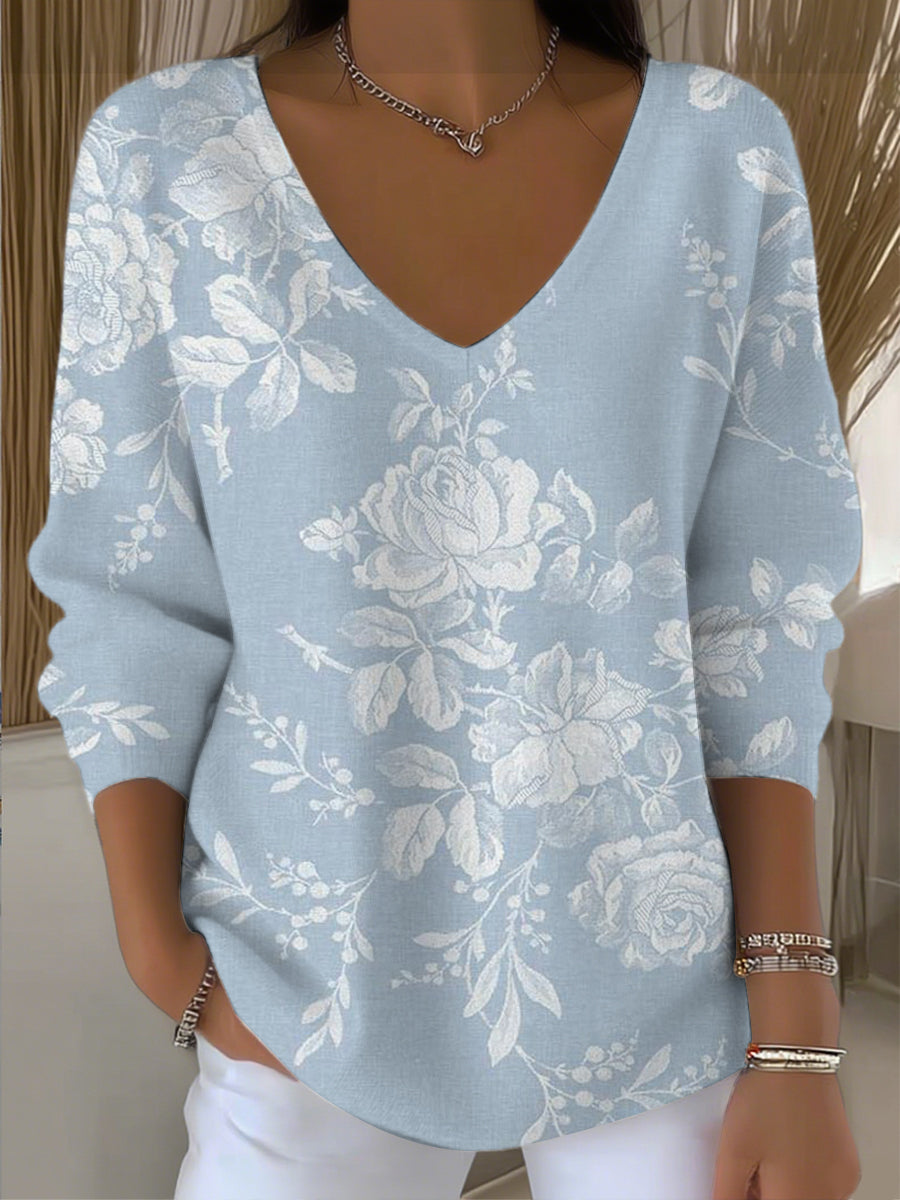 Dámské elegantní bílý růžový modrý svetr s v krkem