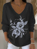Dámské elegantní černý svetr vkrk s jemnou stříbrnou květinovou výšivkou