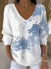Dámské elegantní modré květinové větev vkrk svetr