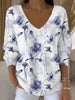 Dámské elegantní modré květinové vneck svetr