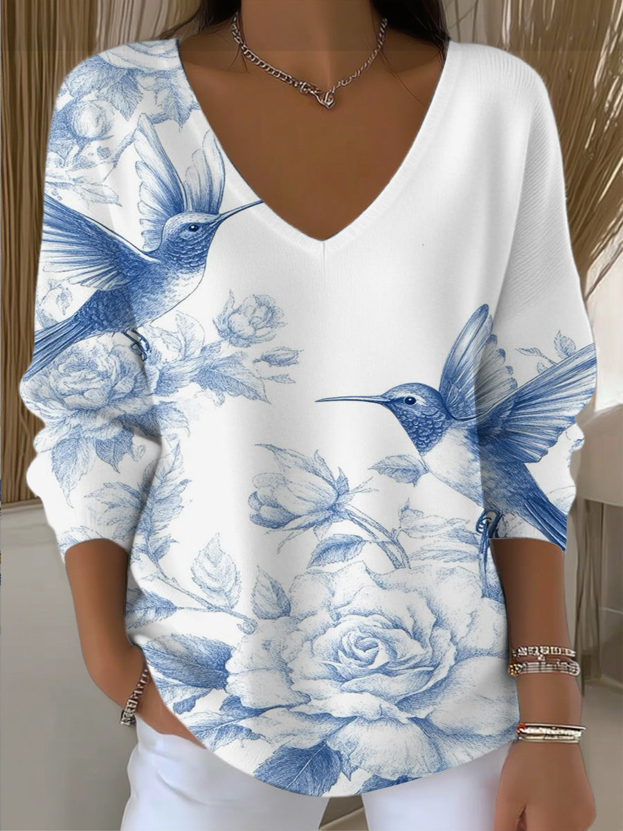 Dámské elegantní modrý kolibrík a růžový svetr v krku