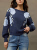 Dámské elegantní námořnictvo květinové tisk člun krku svetr