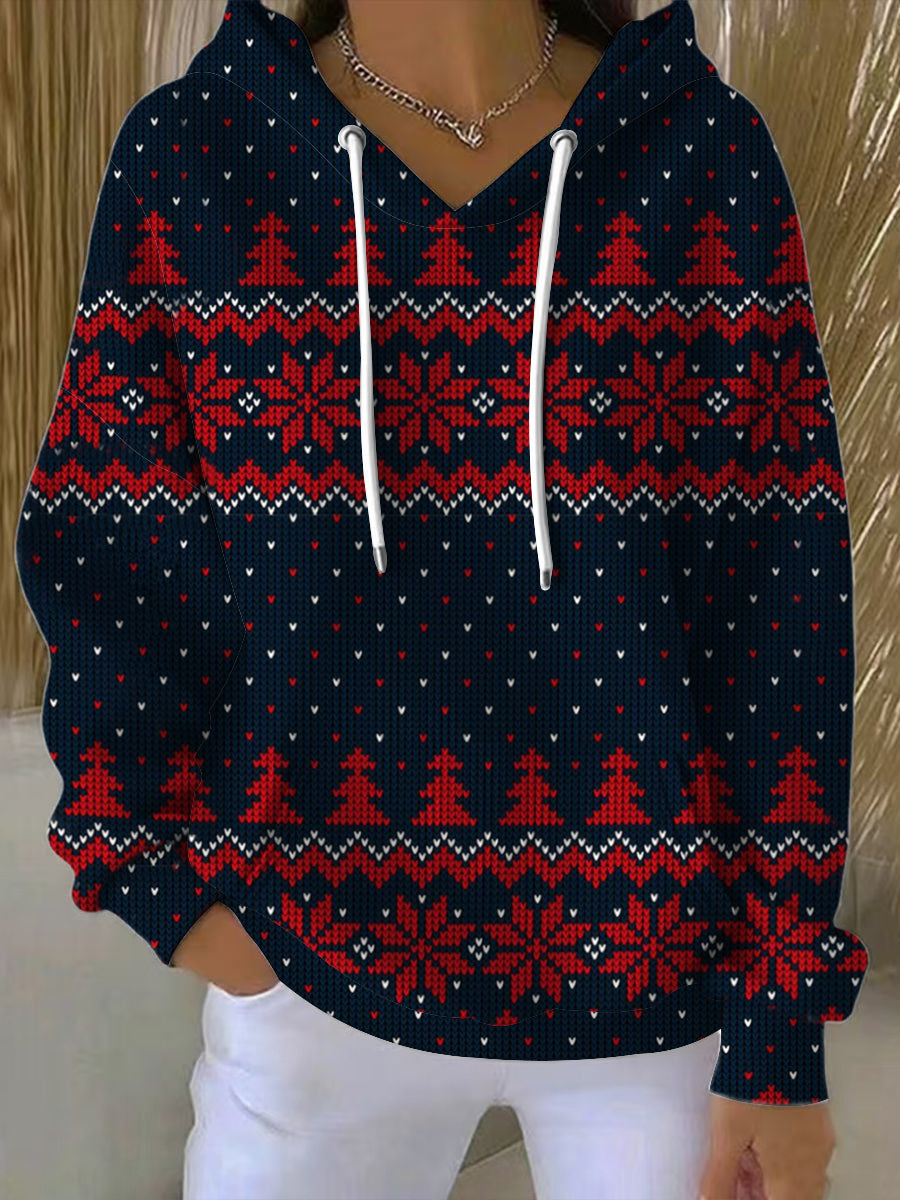Dámské elegantní námořnictvo vánoční tisk mikina