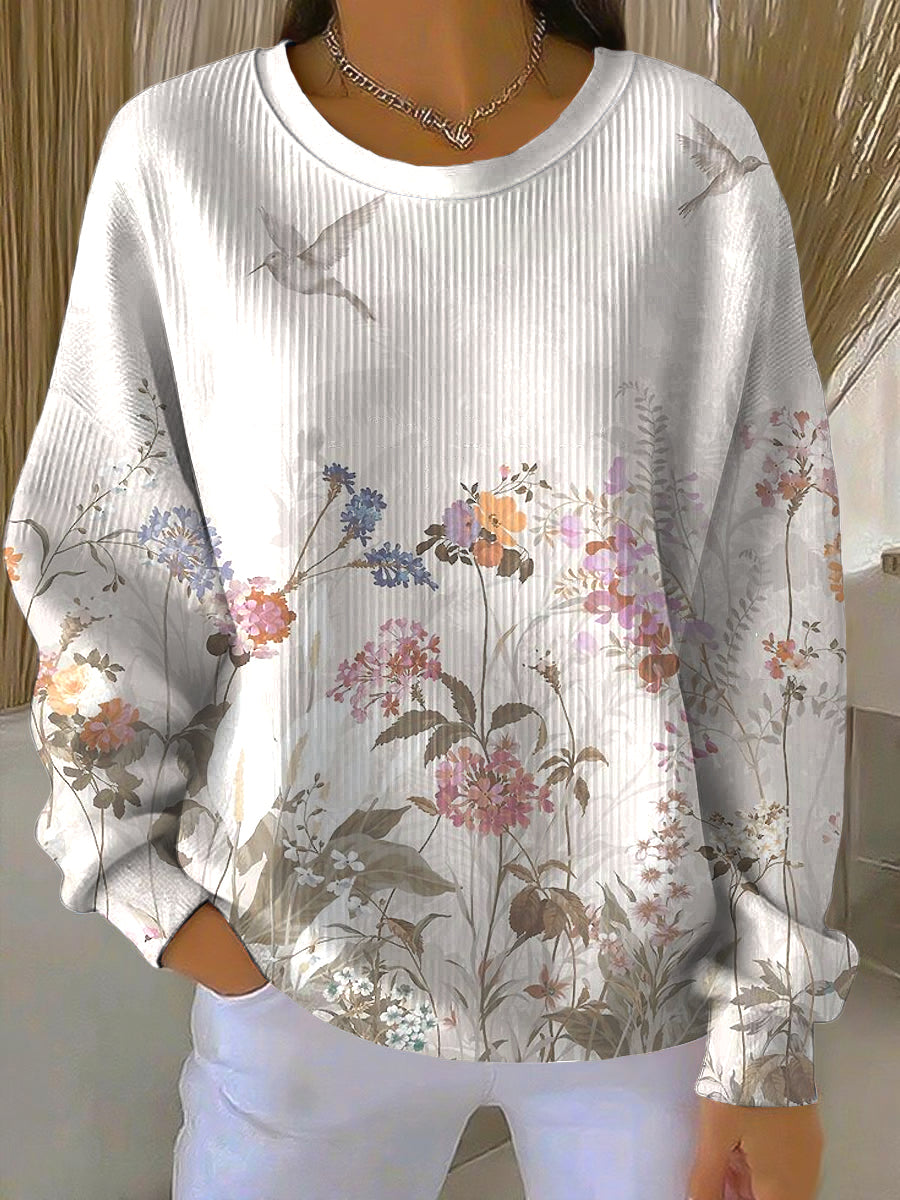 Dámské elegantní ptačí a květinové umění příležitostné štáb krku pulóver
