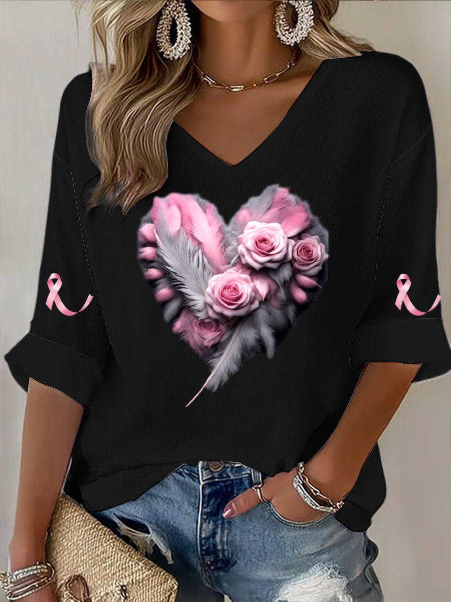 Dámské elegantní růže a stuha rakoviny prsu téma černá v krku s dlouhým rukávem