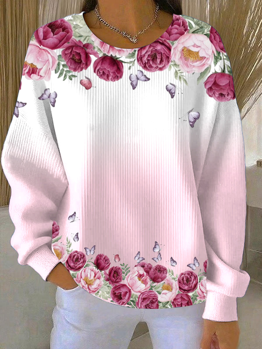 Dámské elegantní růžovobílá gradientní mikina s peonicí a motýlkem