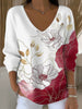 Dámské elegantní zlaté a červené květinové čáry art print vkrk top