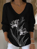 Dámské evropské styl černý v-neck svetr s high-end květinovou výšivkou klasický a pohodlný vhodný pro různé denní scény