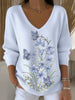 Dámské evropské styl světle modrý svetr s v-neck s okouzlující květinovou výšivkou moderní a pohodlné vhodné pro každodenní nošení