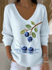 Dámské evropské styl světle modrý svetr v krku s vynikající borůvky výšivky elegantní a měkké zvyšující texturu každodenního oblečení