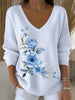 Dámské evropské styl světle modrý v-neck svetr spárovaný s lákavou květinovou výšivkou módní temperament vhodný pro každodenní nošení