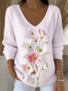 Dámské evropské styl světlé růžové v-neck svetr s jednoduchou a módní květinovou výšivkou elegantní a módní snadno zvládnutelný denní oděv