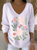 Dámské evropské styl světlé růžové v-neck svetr s krásnou holubní výšivkou moderní a pohodlné vhodné pro každodenní nošení