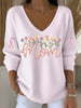 Dámské evropské styl světlé růžové v-neck svetr s "máma" květinovou výšivkou elegantní a příjemné vhodné pro každodenní nošení