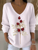 Dámské evropské styl světlé růžové vneck svetr zdobený roztomilou a jemnou květinovou výšivkou klasické a pohodlné vhodné pro různé denní scény