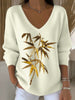 Dámské evropské styl světle žlutý v krku svetr zdobený vynikající list výšivkou jednoduchý a módní představující styl v každodenním oblečení