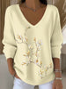 Dámské evropské styl světle žlutý v-neck svetr s květinovou výšivkou elegantní a měkký vhodný pro každodenní nošení