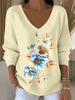 Dámské evropské styl světle žlutý v-neck svetr spárovaný s nádhernou květinovou výšivkou módní a teplé vhodné pro každodenní potřeby nošení