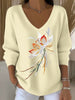 Dámské evropské styl světle žlutý v-neck svetr zdobený elegantní květinovou výšivkou čistý a volný vytváří rafinovaný každodenní pocit