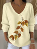 Dámské evropské styl světle žlutý vneck svetr s nádhernou výšivkou listu módní a pohodlné vhodné pro každodenní nošení