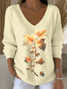 Dámské evropské styl světle žlutý vneck svetr zdobený jednoduchou květinovou výšivkou jednoduchou a atmosférickou představující styl v každodenním oblečení