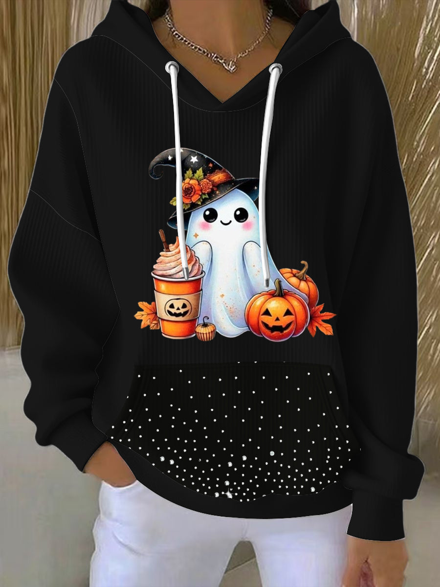 Dámské halloween rozkošný duch s pití a tekvicí mikina