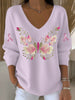 Dámské jednoduché a elegantní motýl a stuha vyšívané světlé růžové v krku svetr
