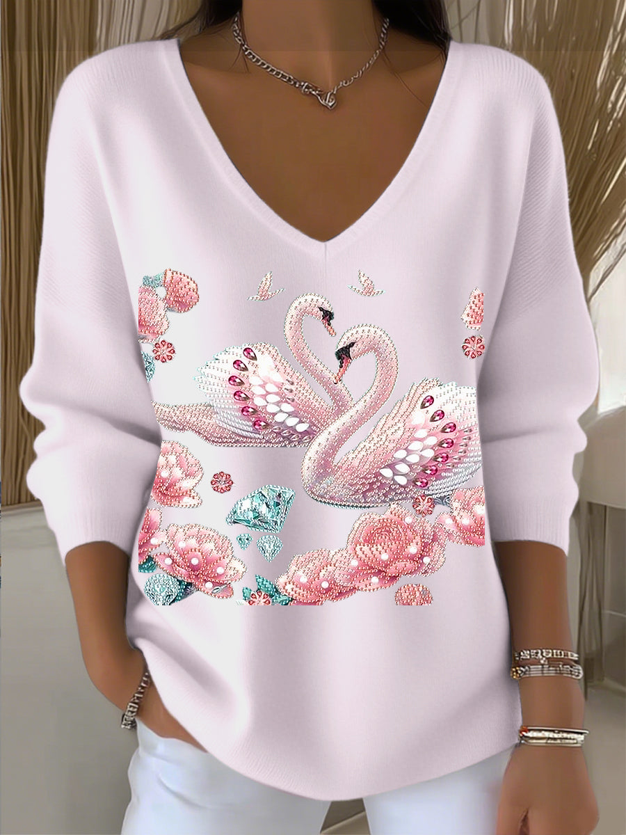Dámské jednoduché a elegantní světlé růžové diamanty labuť v krku svetr