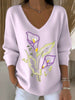 Dámské jednoduché a krásné podkovy květ výšivky světlé fialové v krku květ výšivky svetr