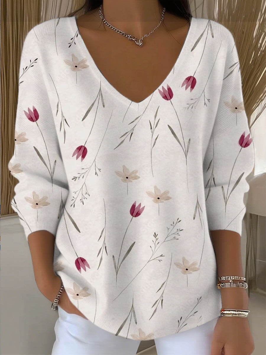 Dámské jemné červené tulipánové květinové vkrk svetr
