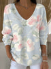 Dámské jemné modré květinové tisk vkrk svetr