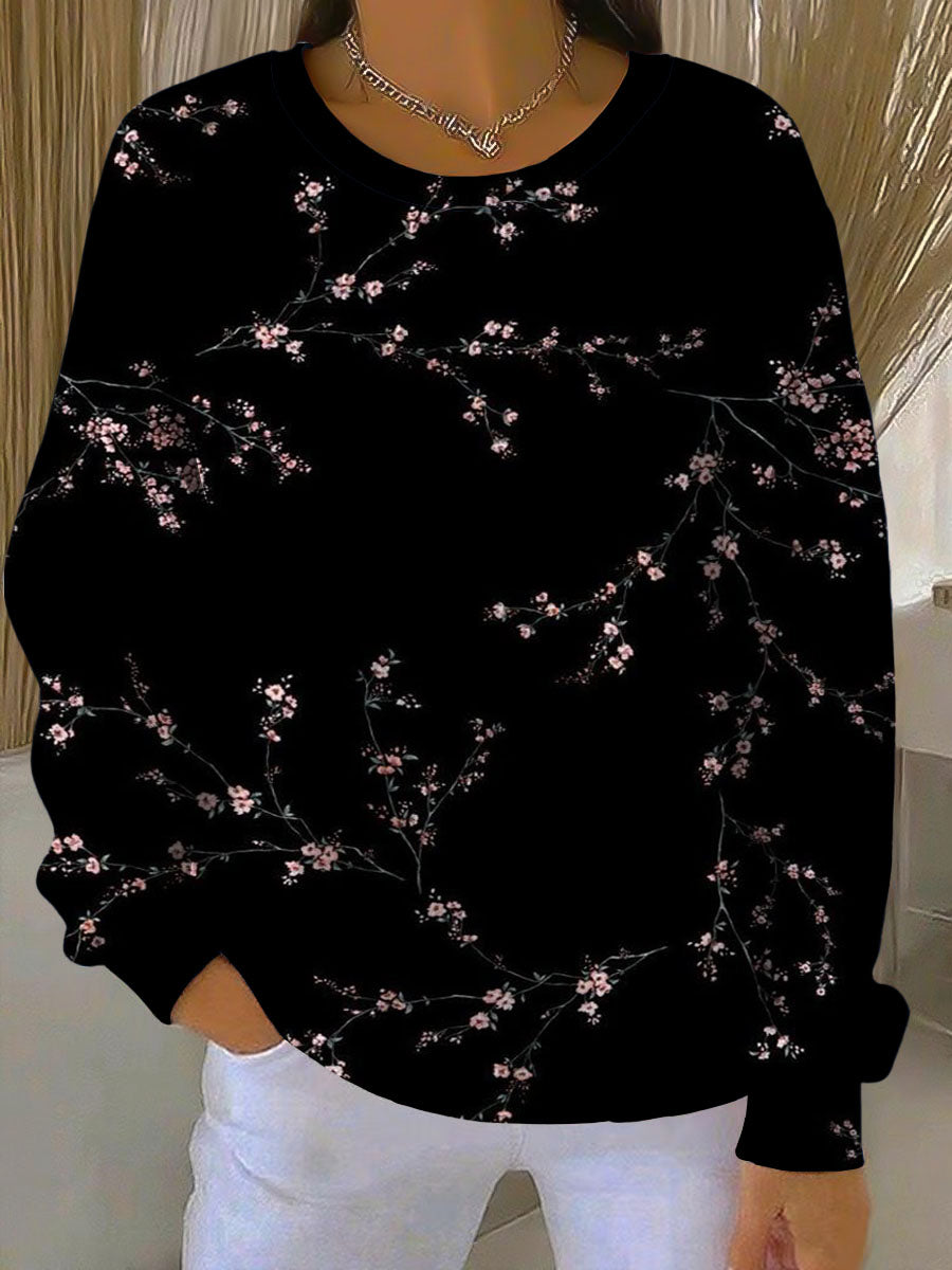 Dámské jemné růžové květinové černé mikiny