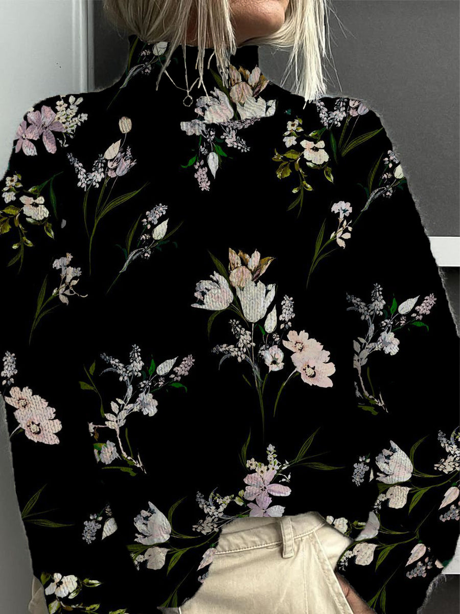 Dámské jemné vícebarevné květinové tisk mock krk svetr