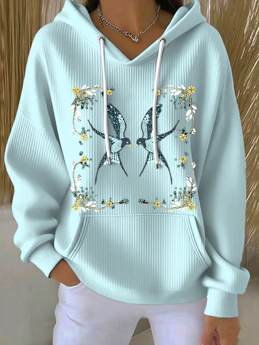 Dámské jemný květinový rám ptačí tisk světle modrá mikina