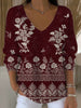 Dámské klasické červenobílé květinové otisky vkrk svetr