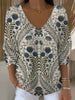 Dámské klasické modré květinové listy otisk vkrk svetr