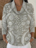 Dámské klasické šedé květinové vyšívání tištěné kápě krku svetr